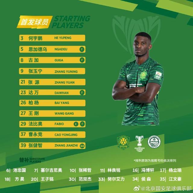 是役,他再次調整首發,全新的442陣容為:門將張健智,后衛王剛、恩加德烏、柏楊、何宇鵬,中場張源、達萬、古加、曹永競,前鋒法比奧和張玉寧。